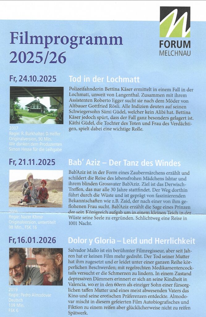 Alle Vorführungen sind öffentlich und alle sind herzlich zum jeweiligen Apéro vor dem Film eingeladen.